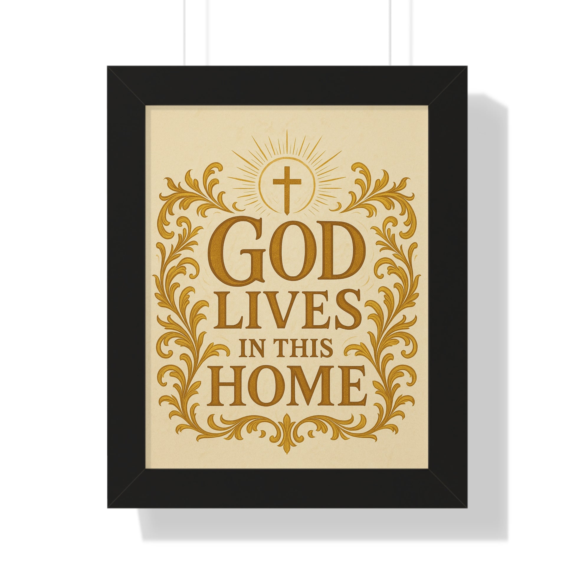 God Lives in This Home Framed Vertical Poster, Faith Decor, Christian Wall Art, Inspirational Gift, Home Blessing, Religious Decor